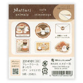 These flake stickers showcase animals enjoying a peaceful, easygoing day. The design features a long-tailed tit enjoying a peaceful moment at a cafe. Perfect for adding a warm touch, they’re great for sealing envelopes or decorating your planners.