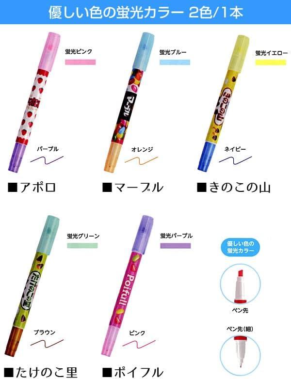 人気のおやつマーケettoshirizuの優しい色のラインマーカーと細字いみんな大好きなお果子をデザインした5種類‘アポロ’‘マーブル’‘きの裡’ 『ポイfuru』 』をセットにしました。お子様へのプurezentoにもおすすめですす。